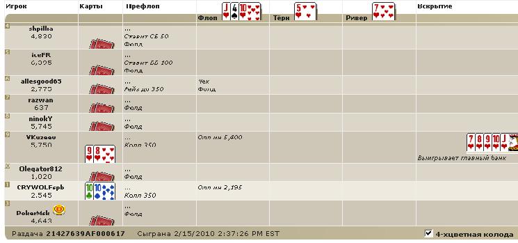вылетел в битве за билет в первой же раздачи был бит высшем флешом