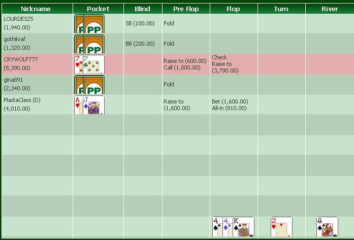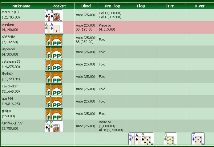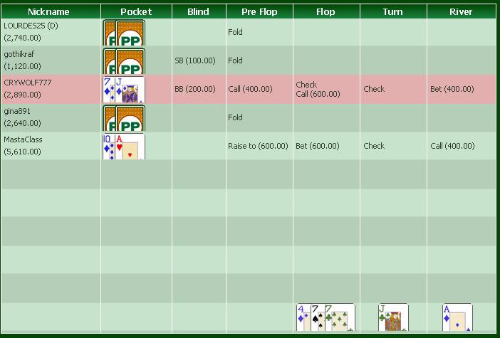 tomtomAAAA7 calls 20, Hero calls 20, PartySleeps raises to 100, 4 folds, tomtomAAAA7 calls 80, Hero calls 80