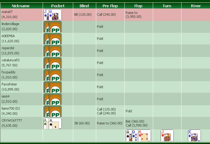 Kroko x checks, Hero bets 60, babas057 calls 60, 1 fold, Kroko x folds