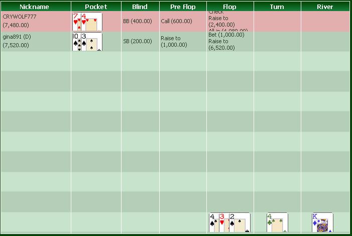 2 folds, babas057 calls 20, 1 fold, the_tinman11 calls 20, 1 fold, Kroko x calls 10, Hero checks