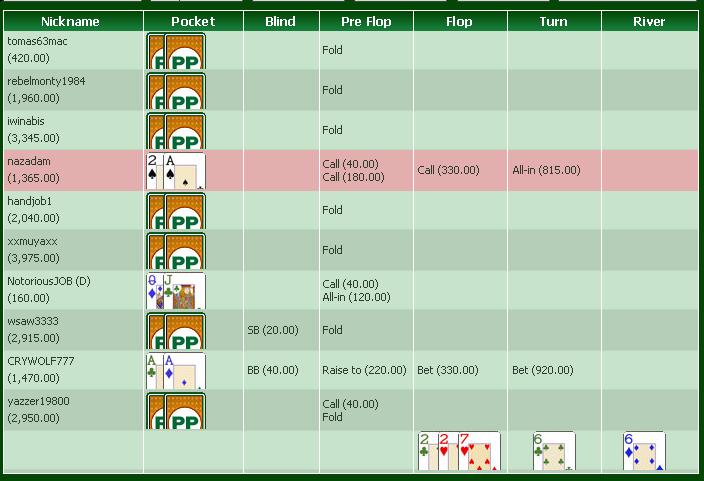 Quote (Nightmare) Херо лаки бой, в этой раздаче ;) да жесть вобще ,так не хотел заходить колом ,а аллины плохо смотрелся столько народу позади сидит еслиб пришол челу еще флеш ваще был бы трындец