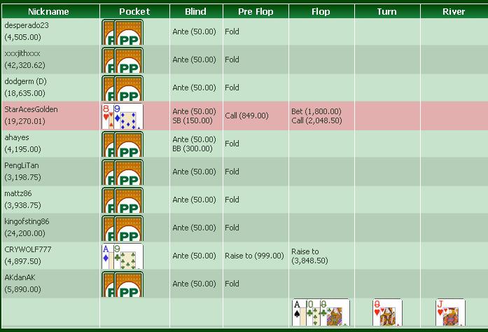 ну слил я где то 150$ за 10 дней,сколько раз по злому меня в пре итм переезжали,стоит только полистать страничек 10 последних AK<AQ JJ-KK<AK TT-22 <AK я уж не говорю про совсем курьездные как AA<65 и тд