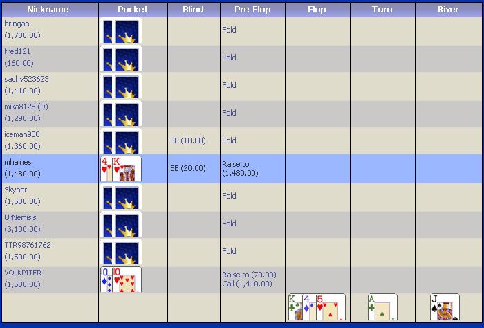 | не получилcz дебют набил стек,а потом нарвался на королей с вальтам и проиграл на остатки стека коин 88<KQ,а во второй десятке ,блеф не прошел 70% просрал и в конце опять коин проиграл 55<K9